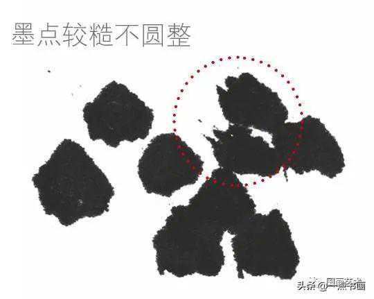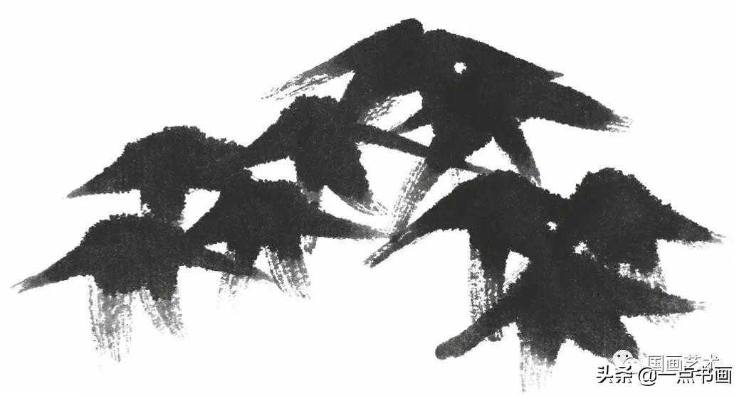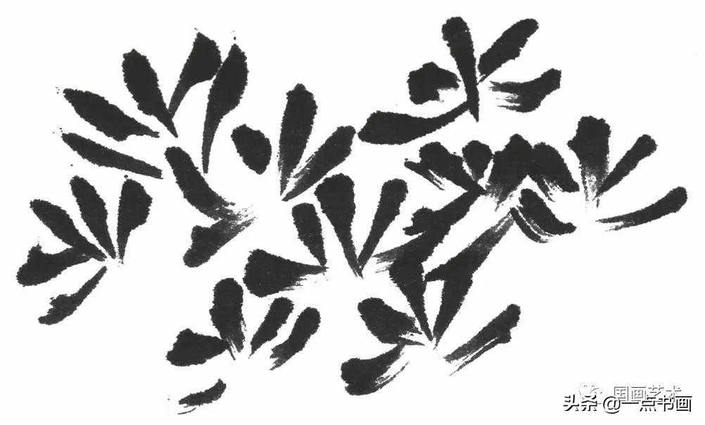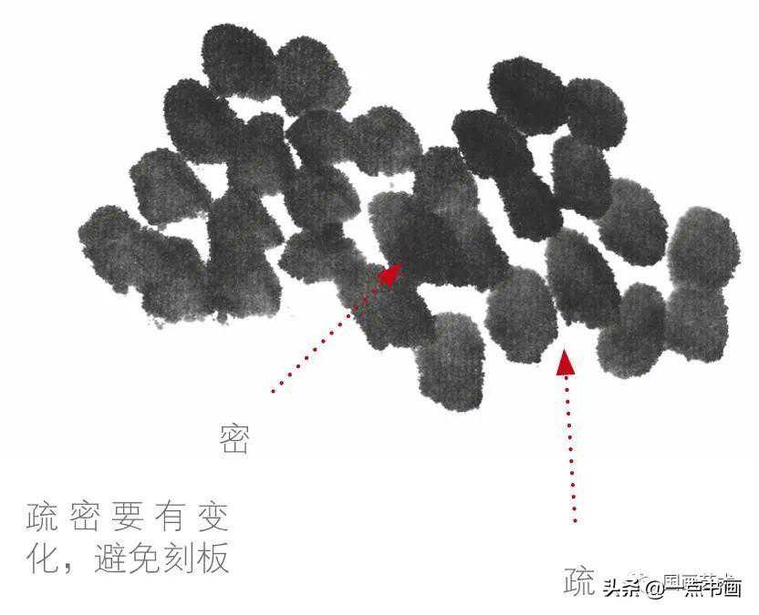 1、运笔尖点出疏密相间的墨点,最好用秃笔点出。↓↓↓