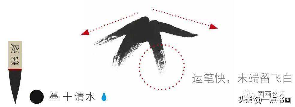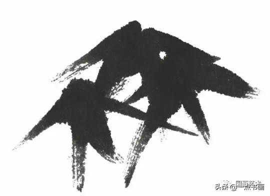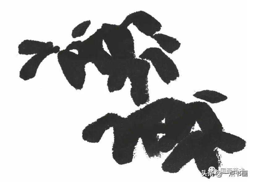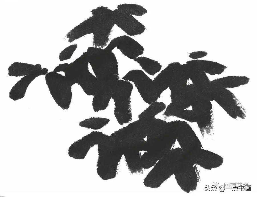 1、以渴笔(即笔肚含稍多水分),蘸浓墨,画出“介”字状的一组叶子。↓↓↓