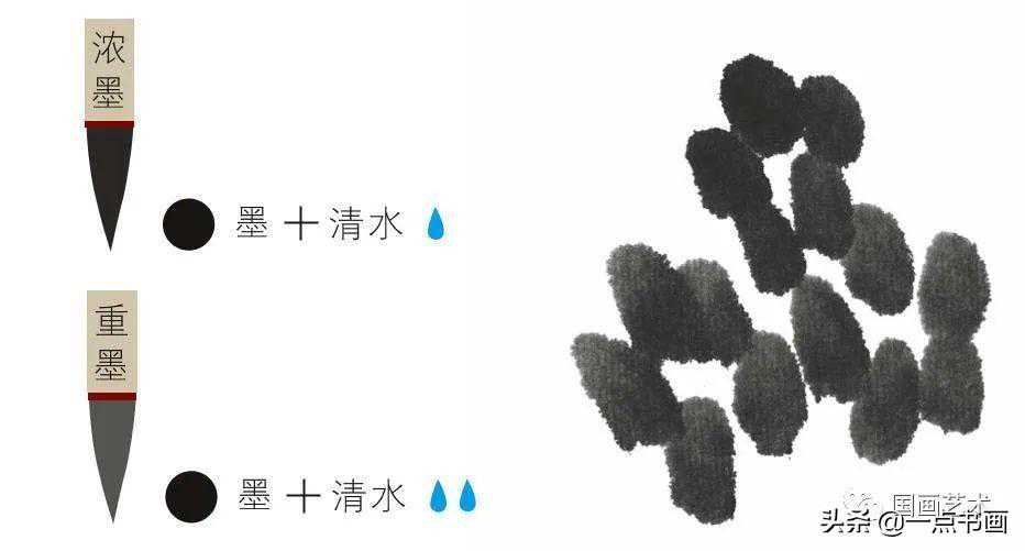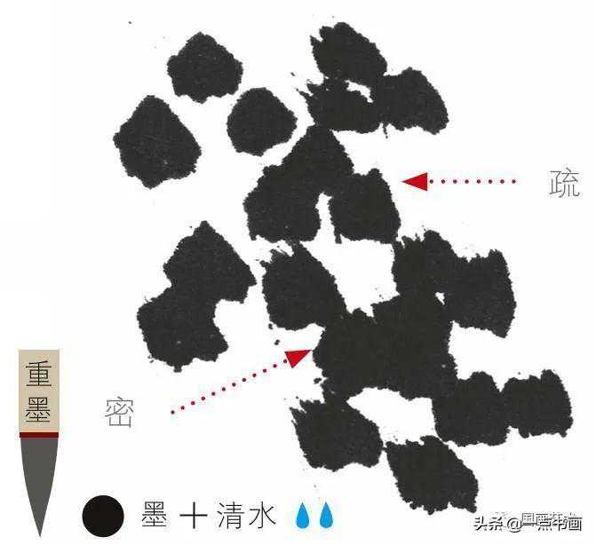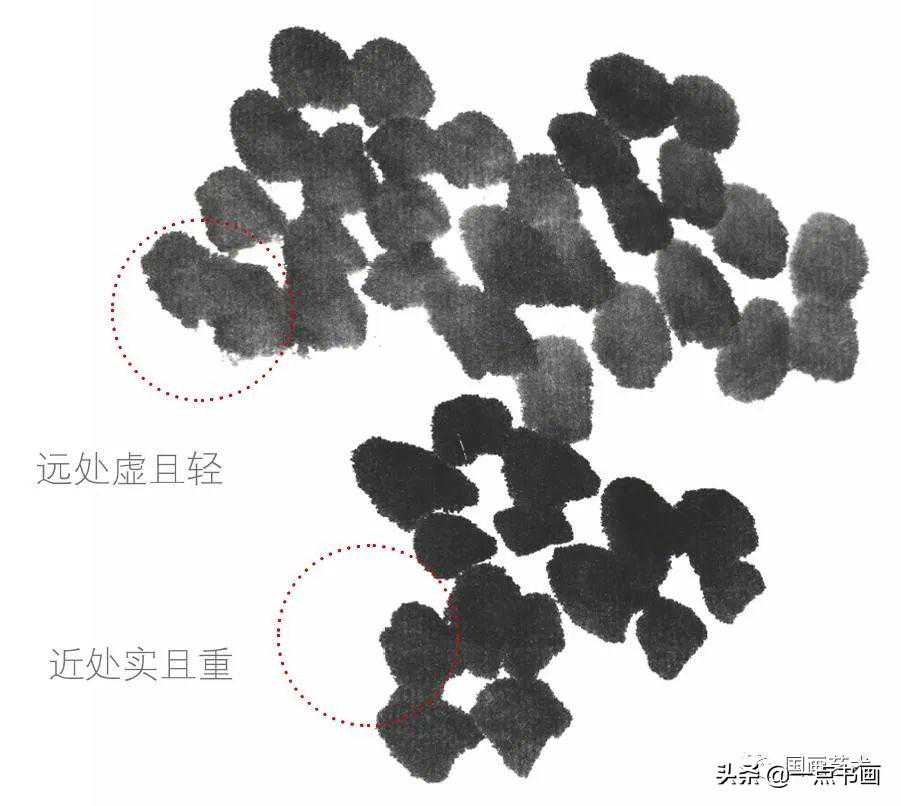 2、同样的方法调稍重的墨色,继续以点厾法画出其他点,注意疏密变化。↓↓↓