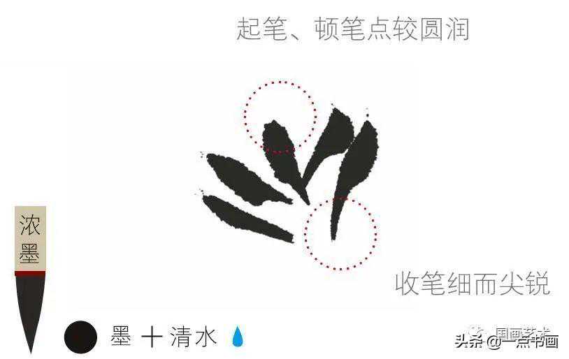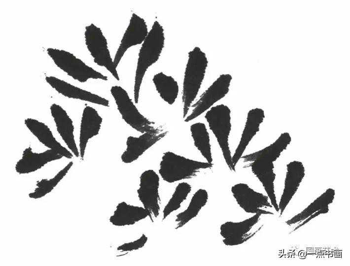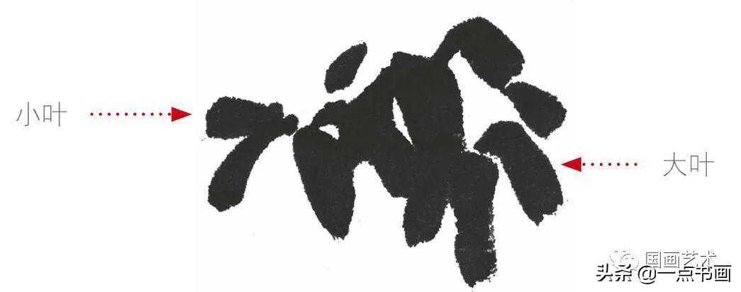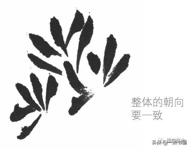 1、侧锋运笔,一笔点出一片叶子,三到四片为一组。↓↓↓