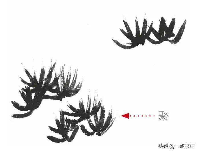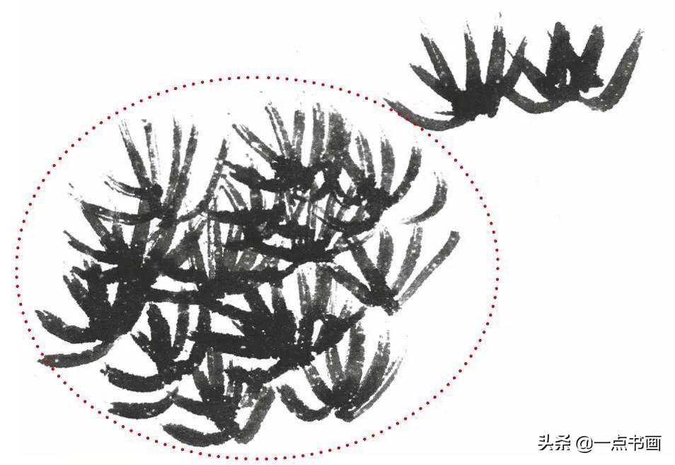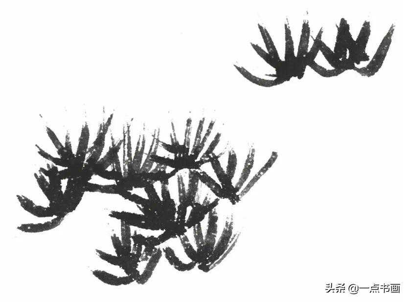 4、向下添加一组针叶,墨色要呈现由浓到淡、由疏到密的变化。↓↓↓