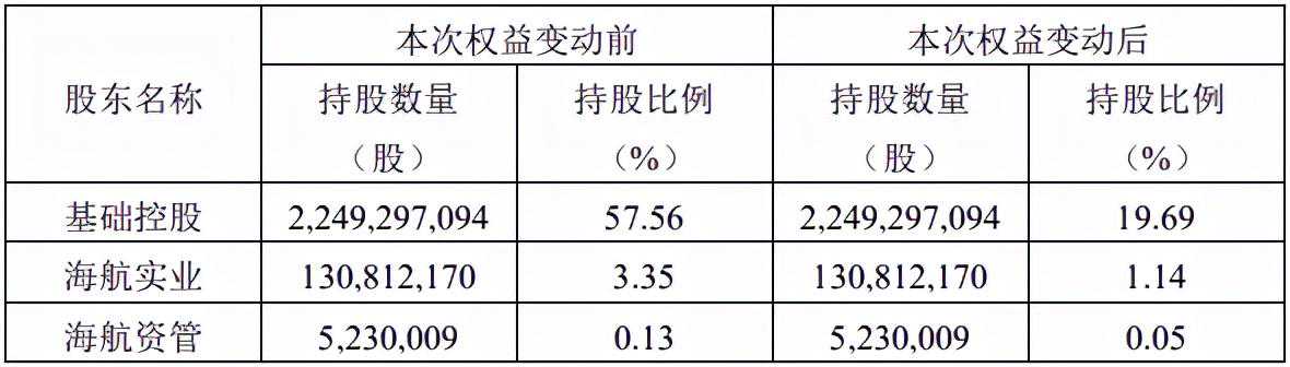 海发控作为第一大股东,成为海航基础新的主导者。