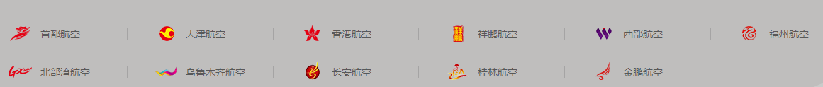 海南航空、首都航空、天津航空、福州航空、祥鹏航空、长安航空、北部湾航空、乌鲁木齐航空、西部航空、金鹏航空、桂林航空、香港航空、天津货运航空等13家航空公司。