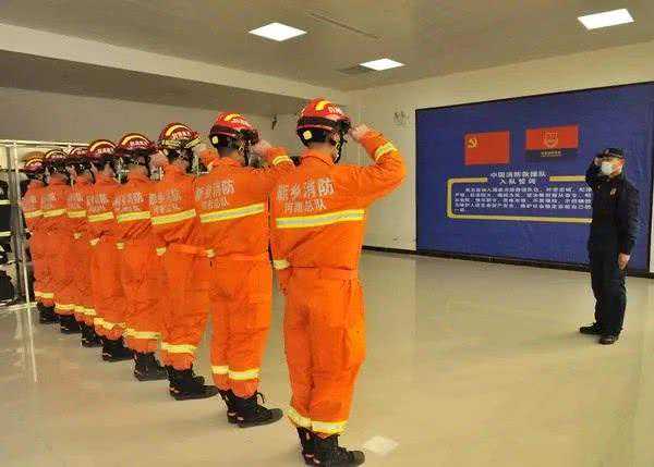 18时20分,长垣市消防救援大队10名党员主动请缨,成立党员先锋队,投身驻守卫材产业集聚区消防站建队一线。