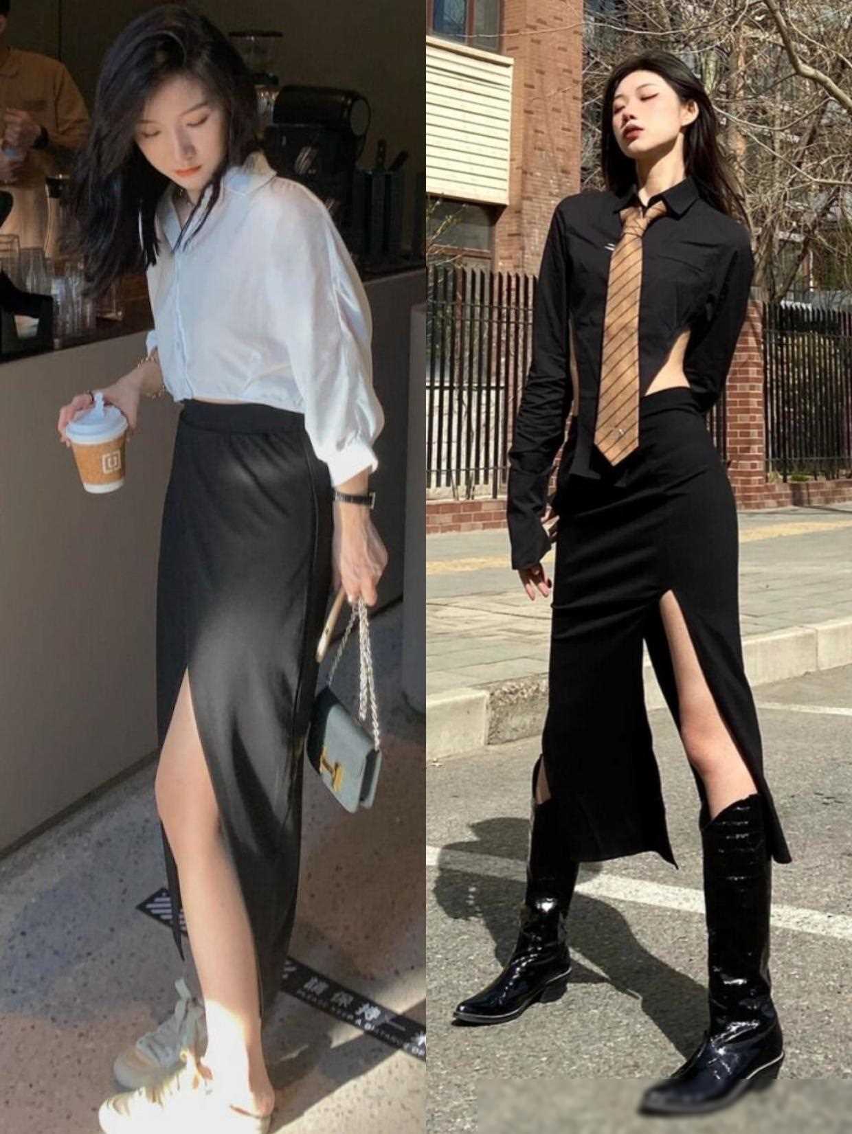 首先,选择一条长度适中的开叉裙。裙摆的长度最好在膝盖上方几厘米,这样既不会显得太过暴露,又能够展现出修长的腿部线条。此外,裙子的颜色最好选择基础色系,如黑色、白色或灰色,这样更容易搭配其他服饰。