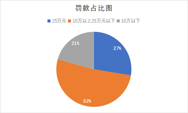 笔者以“人脸识别”作为关键词,通过威科先行数据科进行检索,共检索到422件涉及“人脸识别行政处罚”的案件。其中,因“人脸识别”所涉的人格权益保护案件29件,均发生在房屋销售行业中。在这29件案件中,65%的案件发生在浙江省(以宁波地区为首),罚款金额在10万元以上的案件(包括10万)占比48%,其中罚款金额为25万元的占比27%,具体详见下图。