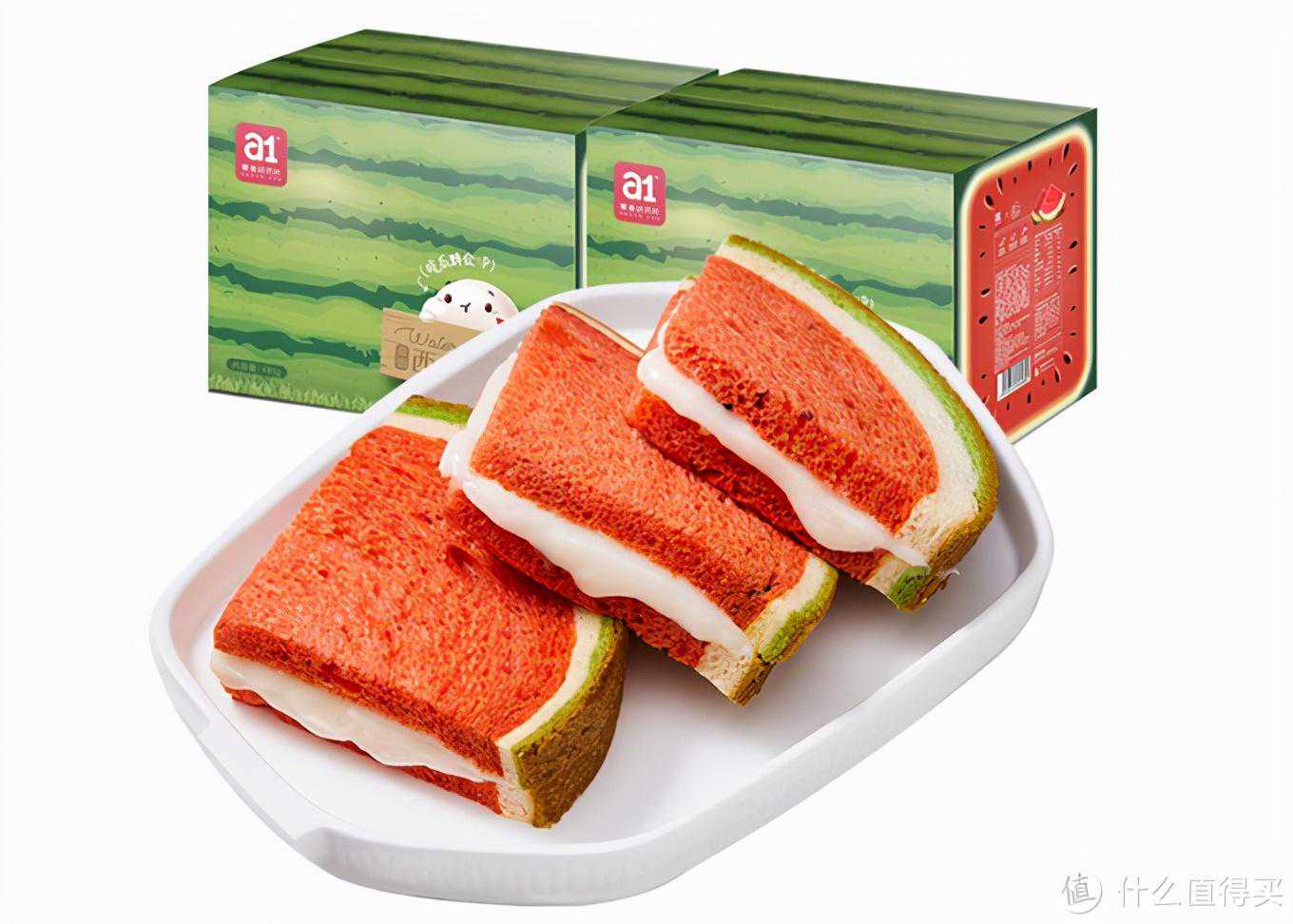 2、a1西瓜吐司这款吐司的外观真的很逼真,超像西瓜,放在盘子里有种西瓜块的既视感。它的西瓜籽是用巧克力做的,瓜瓤是草莓粉,西瓜皮是菠菜粉。