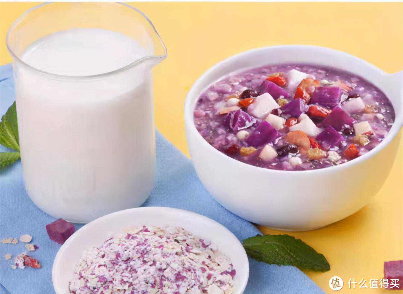 吃的时候感觉料也很足,很有饱腹感,一代的热量是187卡。如果有时候早上没时间买早餐,可以泡一碗这个紫薯粥扛扛。