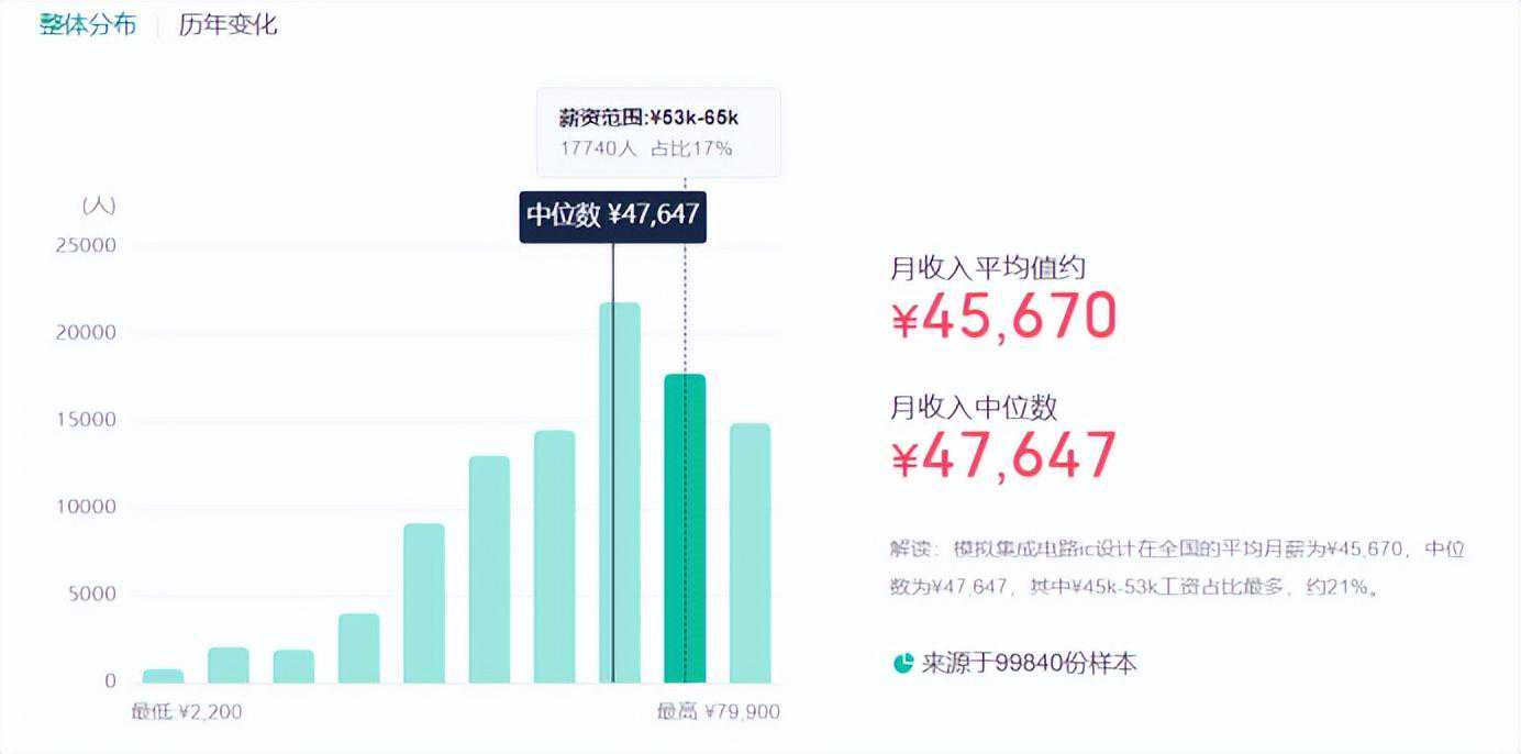 模拟设计月均薪4.5W左右,和数字设计基本持平,但模拟入行门槛更高一些,相应的未来天花板也更高一些。