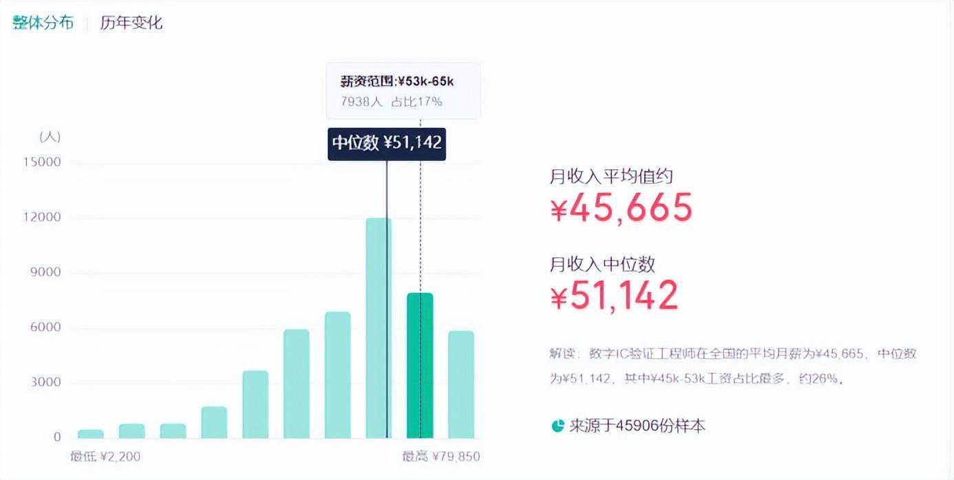 数字IC验证岗位的月均薪是4.5W左右,基本和IC设计持平。