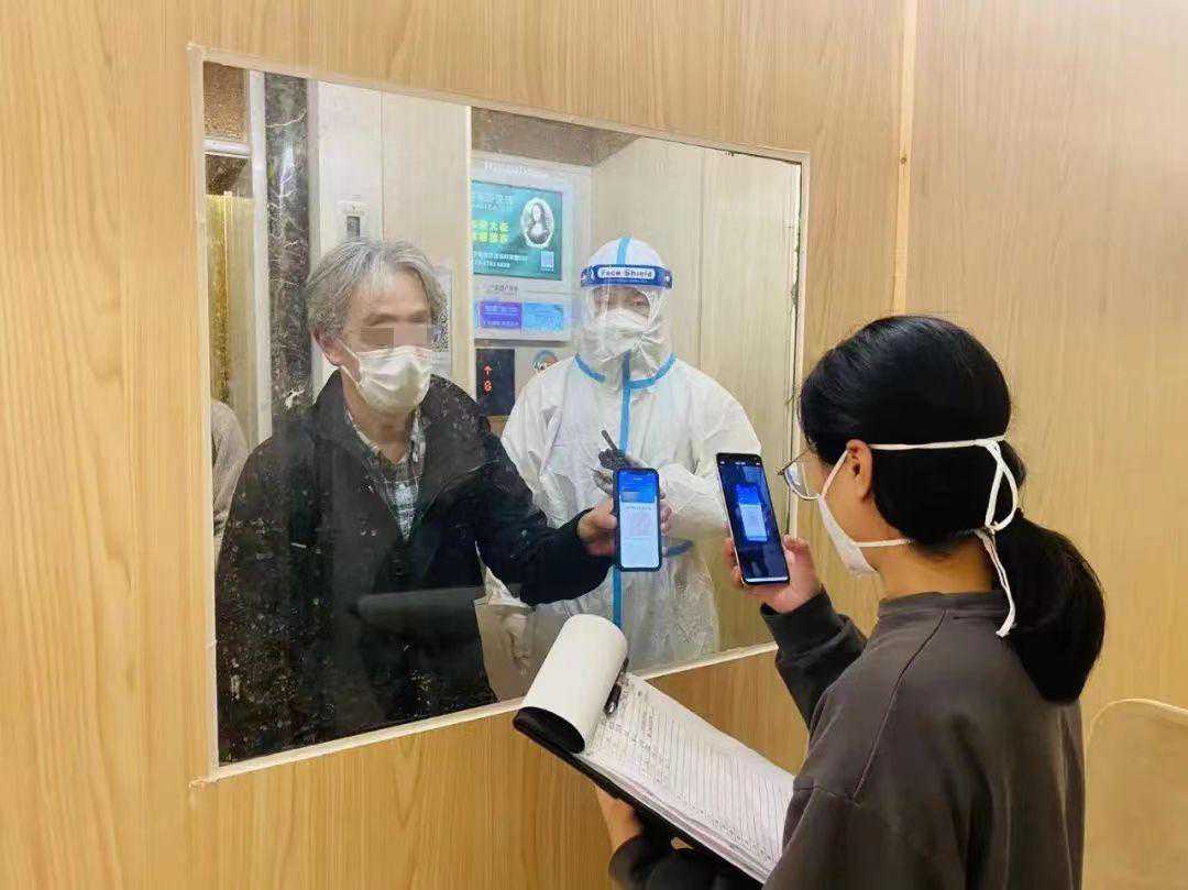 核酸检测时,沈英杰看到自己的两个小孩,一开始竟然没认出自己,后来回到家,小儿子骄傲地跟他说“其中一个大白是我爸爸”。小儿子现在时不时会学他的样子,举着小喇叭通知做核酸。