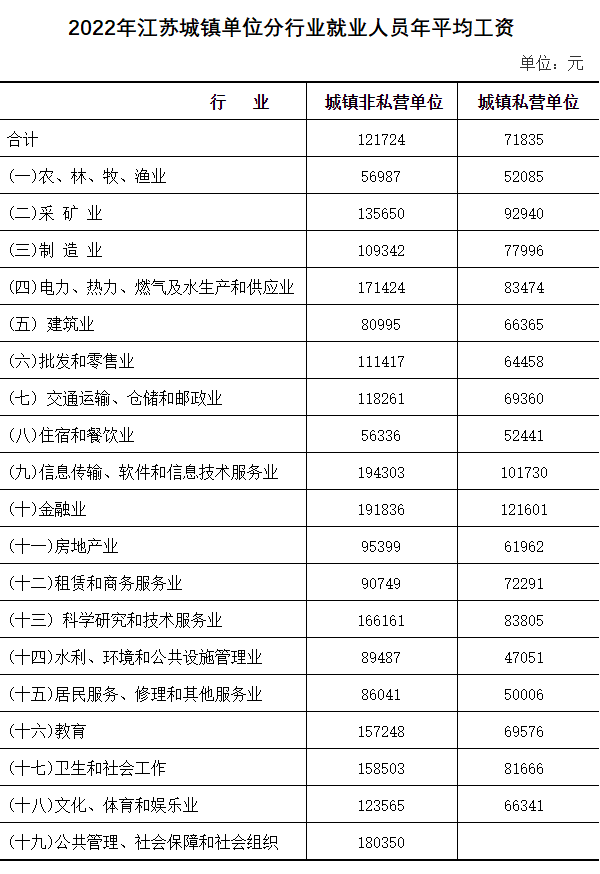 2022年江苏省城镇非私营单位就业人员