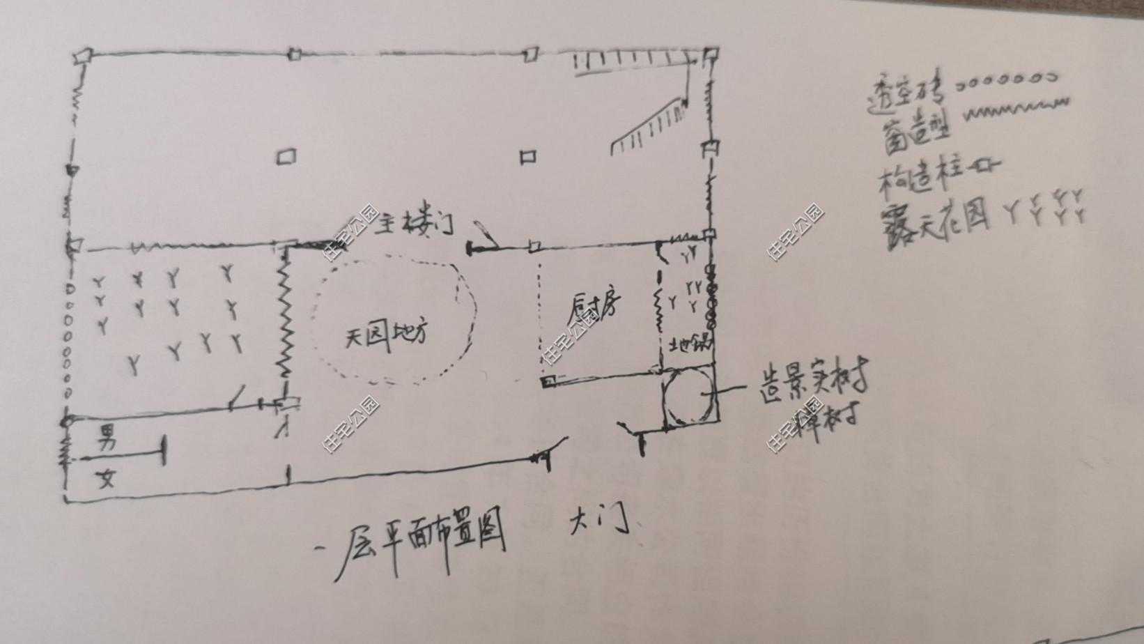 手绘布局更能彰显房主用心,首层大厅为开放式设计,尺寸为10米。