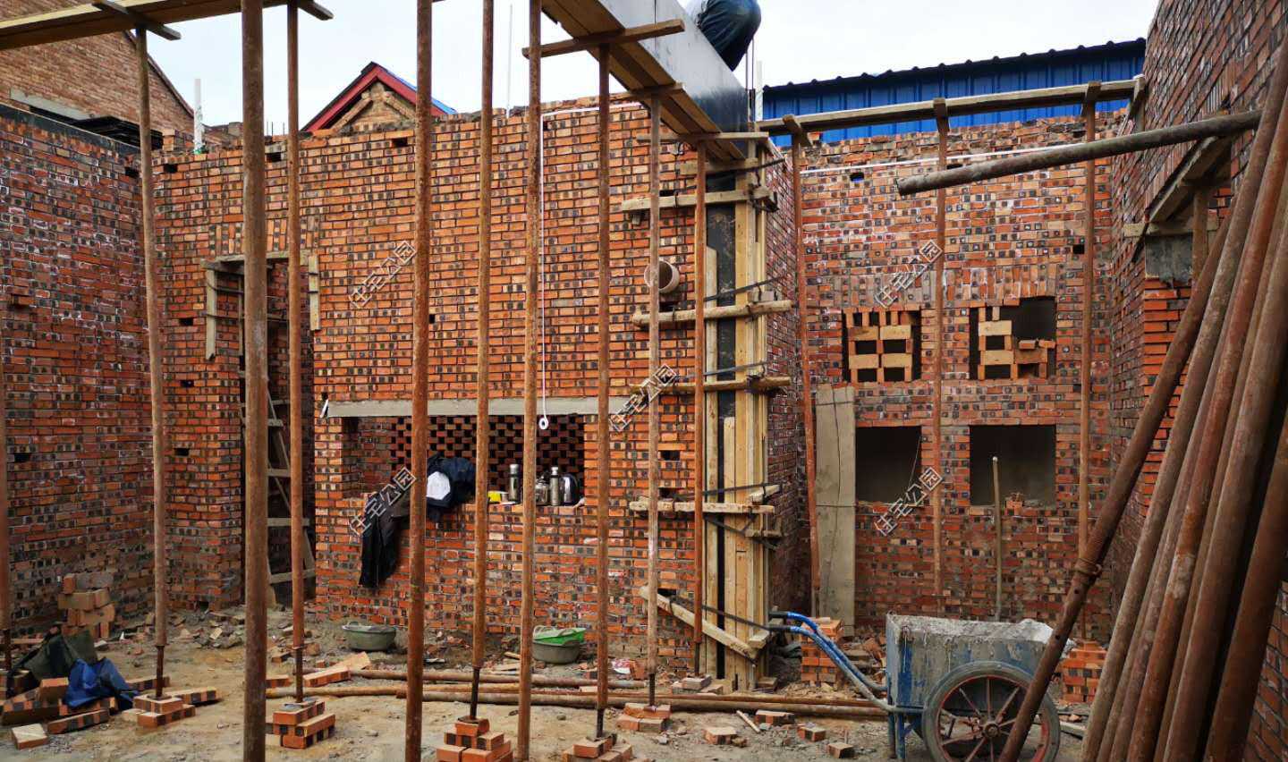 开始砌筑时要先进行摆砖,排出灰缝宽度。第一层砖摞底时,两山墙或相当于山墙位置处排丁砖,前后纵墙排条砖。