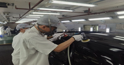 底漆线主要负责车身的前处理清洗及阴极电泳涂装任务;涂胶线主要负责涂车身焊缝密封胶、车底PVC,通常为手工作业;中涂线主要负责车身的中涂喷涂及烘干,通常采用机器人喷涂,局部手工喷涂;面漆线主要负责车身的面漆喷涂及烘干。精饰线主要负责漆后车身的检查、修饰及注蜡。返修线,用于有缺陷车身的补漆。
