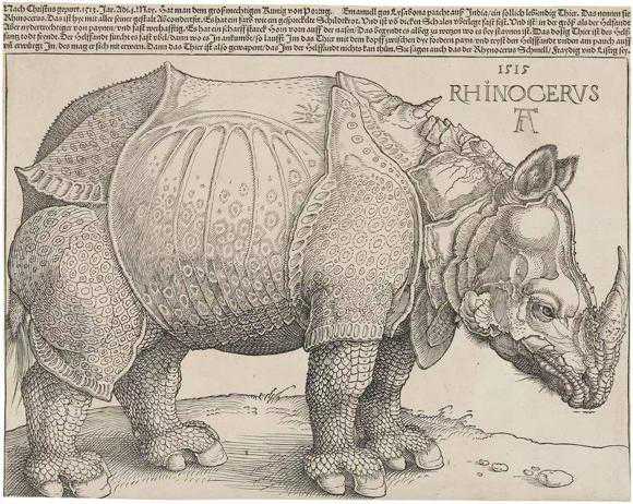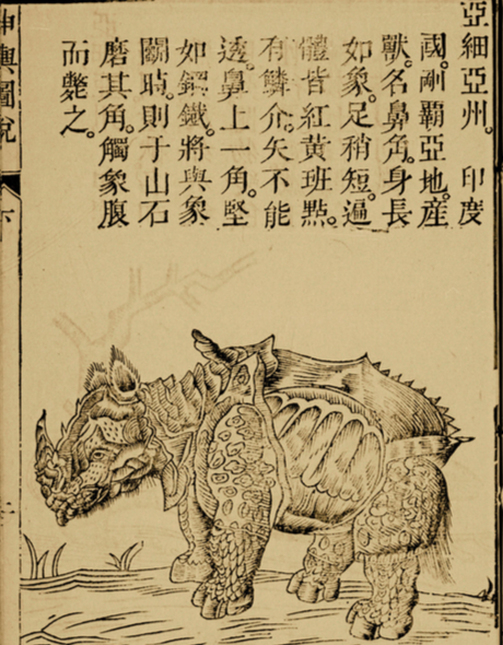 图16(1):16、17世纪西方人眼中的犀牛形象:丢勒的《犀牛》木刻版画(1515年)