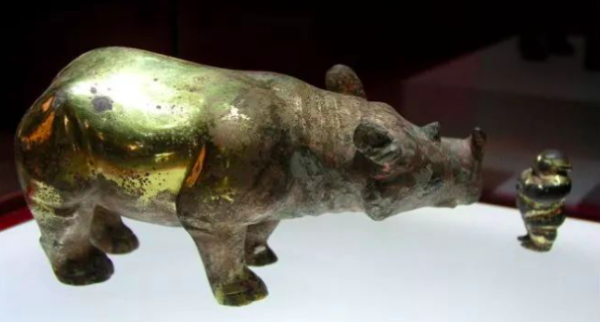 图8:汉代鎏金铜犀牛与驯犀奴(中国国家博物馆藏)