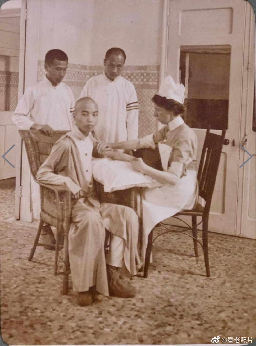(36)1907年,北京协和医学院的学生在学习找血管?穿的是防护鞋套?