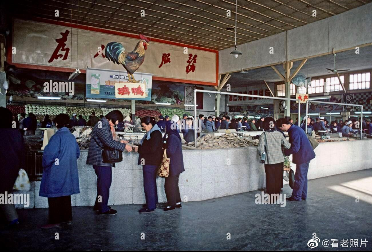(18)1980年代初,北京某大菜市场。那时买水产还是要排队的。