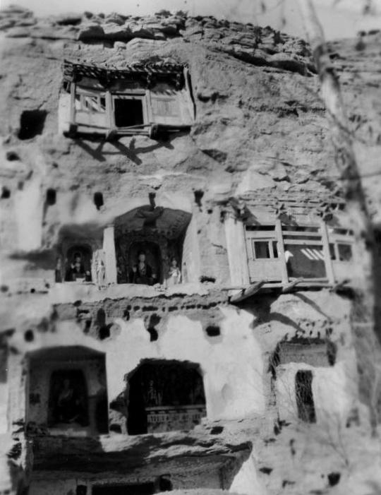(28)1934年的敦煌千佛洞。雕塑裸露在外,所有的石窟随便看。
