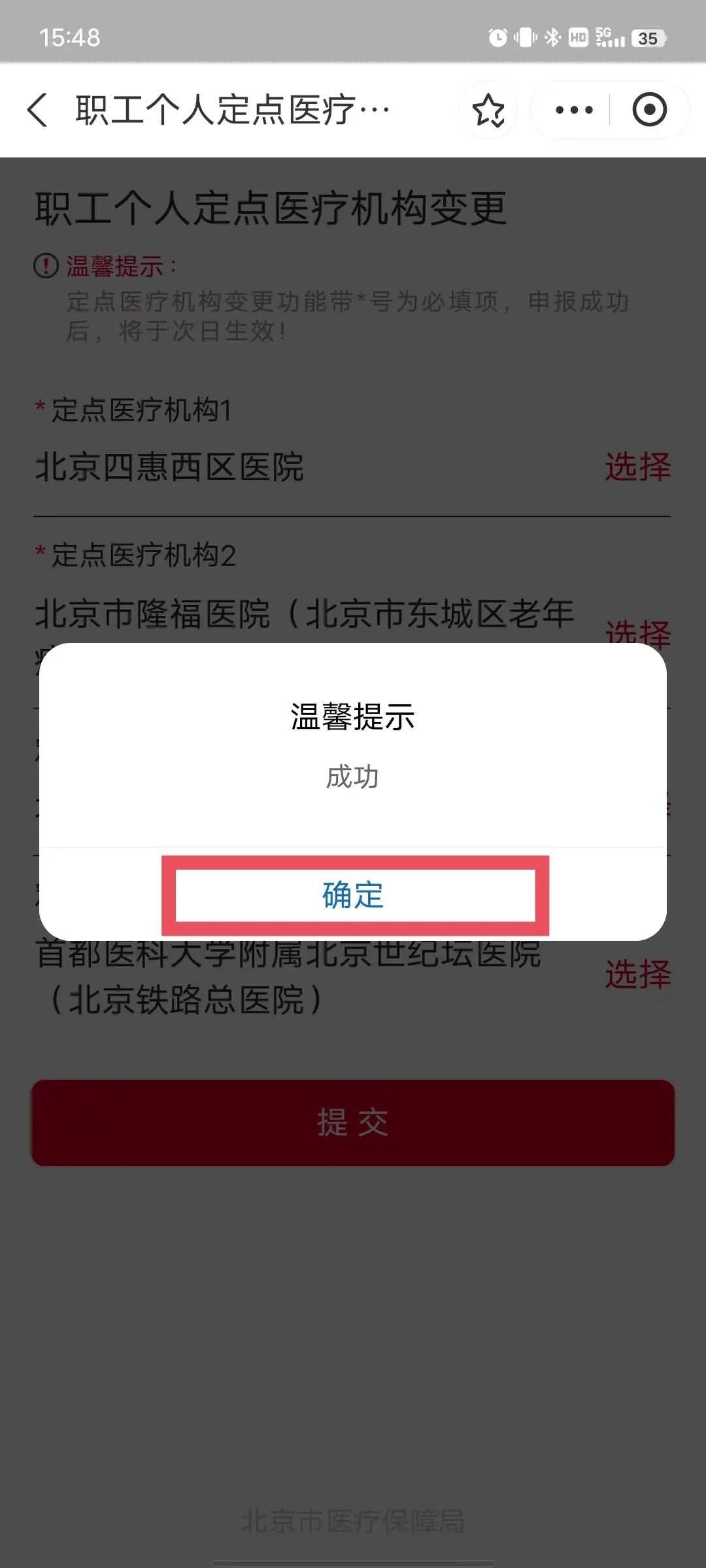 4.输入新选定的定点医院;