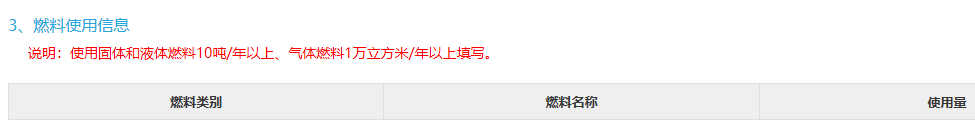 注意:使用固体和液体燃料10吨/年以上、气体燃料1万立方米/年以上填写此表。