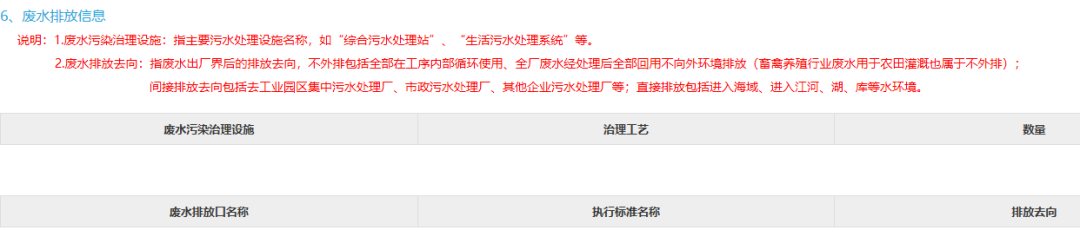 废水排放去向:指废水出厂界后的排放去向,不外排包括全部在工序内部循环使用、全厂废水经处理后全部回用不向外环境排放(畜禽养殖行业废水用于农田灌溉也属于不外排);间接排放去向包括去工业园区集中污水处理厂、市政污水处理厂、其他企业污水处理厂等;直接排放包括进入海域、进入江河、湖、库等水环境。