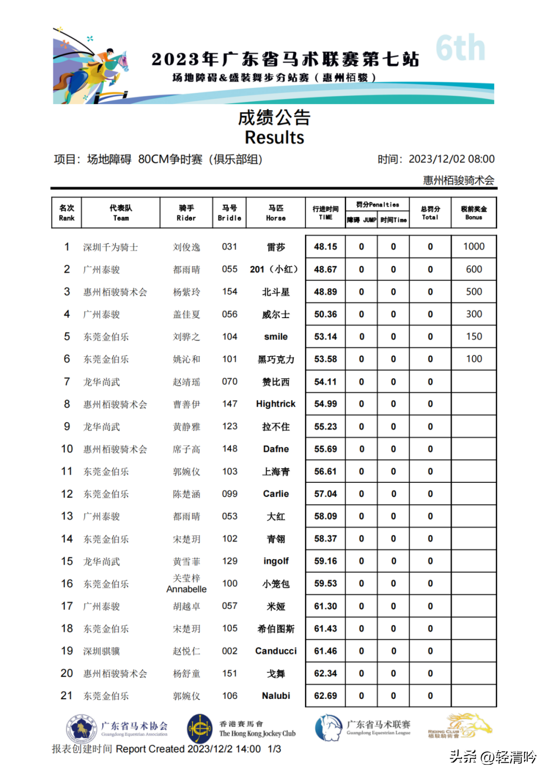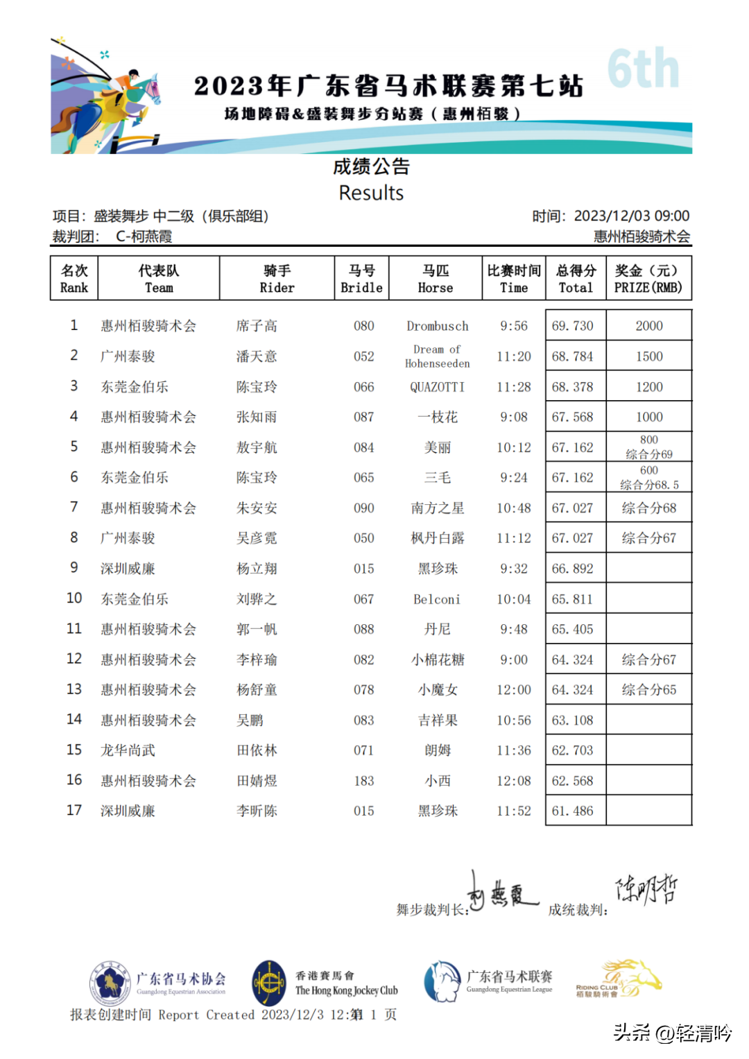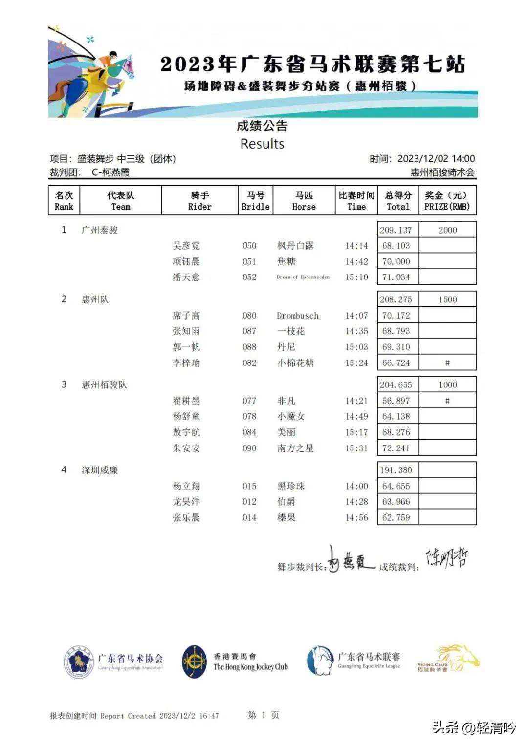 12月3日,2023年广东省马术联赛第七站场地障碍盛装舞步分站赛(惠州栢骏)和“中国体育彩票”2023年粤港澳大湾区马术团体挑战赛(惠州站)在惠州栢骏骑术会落下帷幕。