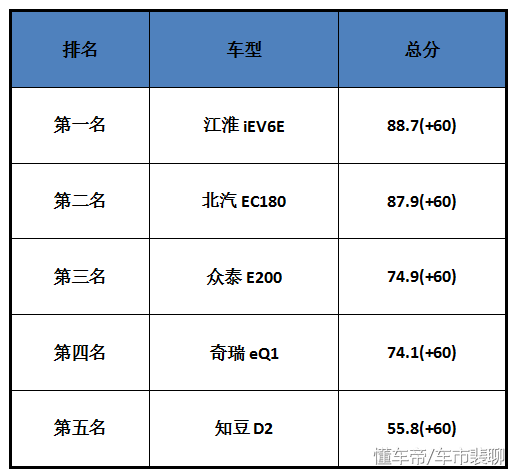 江淮iEV6E在天津汽车技术中心首批EV-TEST测试中获得微型车组总分第一名