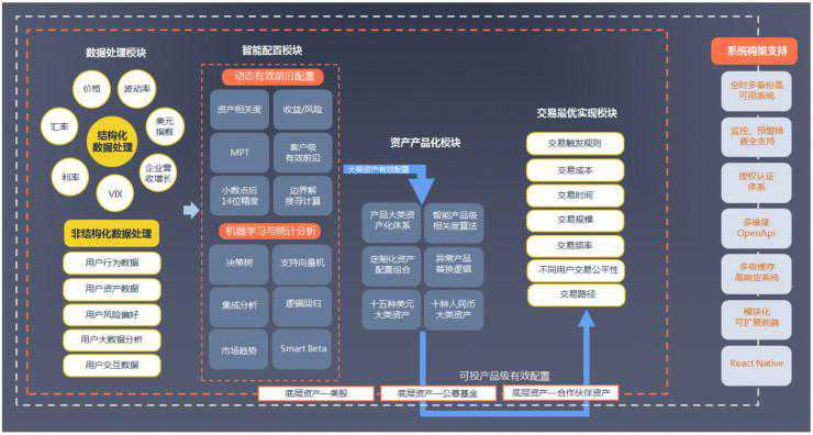 VPAS背后的环节和技术智能投顾的技术环节第一,通过大数据识别用户风险偏好及变化规律,结合投资者的年龄、家庭状况以及投资时间长短等因素,认知用户特性,帮助用户确认其投资目标,也是智能投顾领域常提及的“千人千面”目标。而大数据识别优点体现在两方面,其一,降低传统人力投顾的高成本,提高用户收益;其二,风险识别是进行实时计算,随着市场周期作出相应改变。