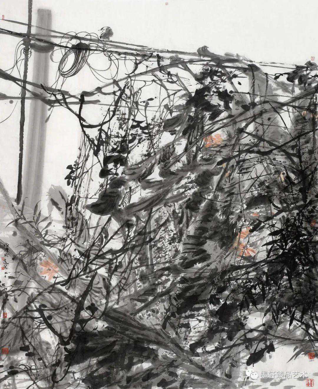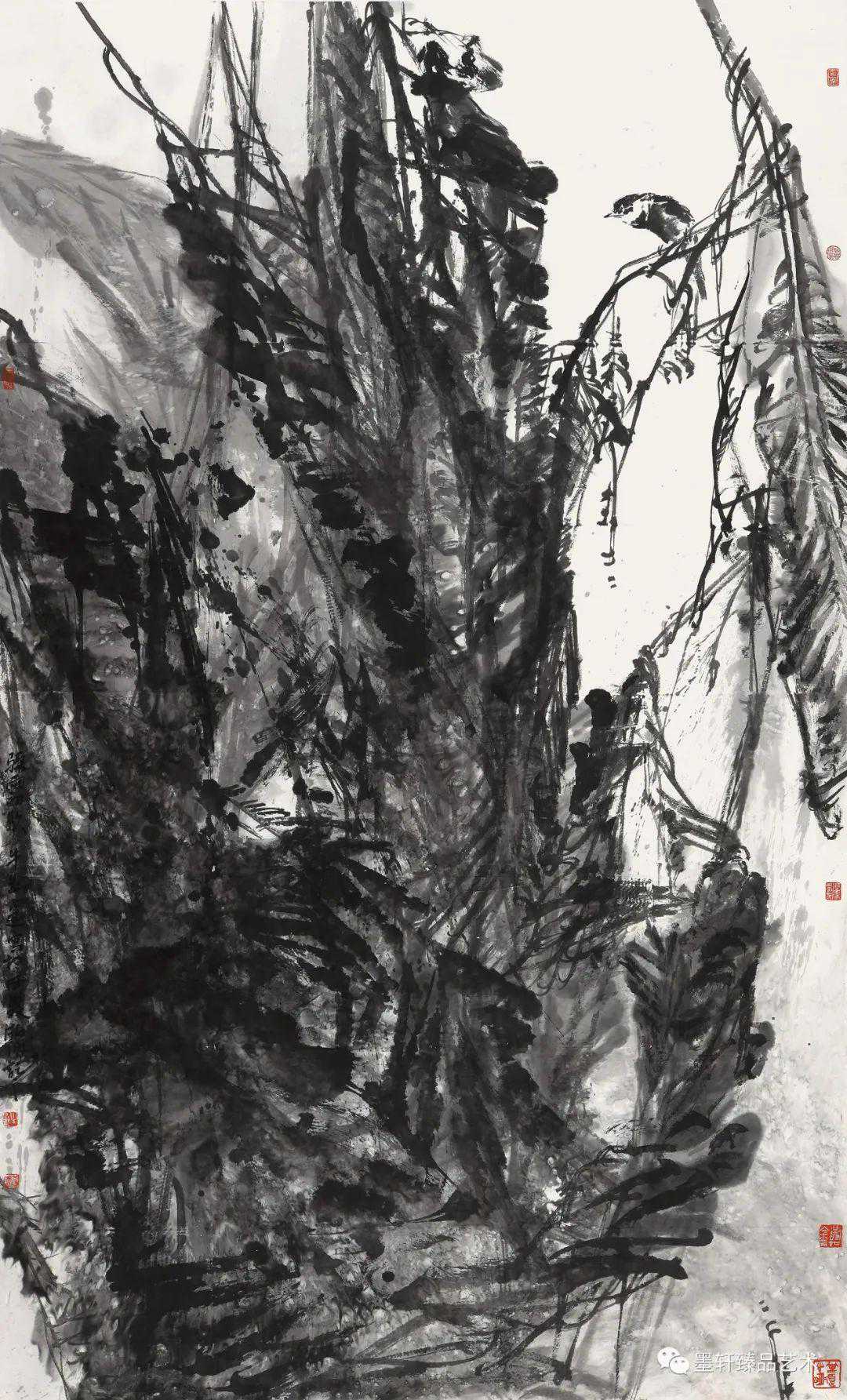 传统写意花鸟画以一笔之成败论英雄,一笔之形、之意、之气、之感,犹如书法一笔之妙,又超越书法一笔之妙,有形,有意,有性情,有气度。当其下笔,人生酸甜苦辣,沉郁顿挫皆在纸上,生一、生二、生三,瞬间天地阴阳杳杳冥冥,万物生焉。其中高下,识者自知。当代花鸟画界,熊晓东当明其意、通其理,近两年成选又入晓东兄门下学习。晓东兄先后就读于中央美院山水画工作室,其山水花鸟俱佳。特别是画竹,其构图舍古人一枝几干之清秀简逸,而直入版纳密林繁复密陈;其竹竿,一笔直入,不拘泥于古人之节节分明,而得气畅力足;其竹叶,舍古人之个介成法,以隶变之法委婉写出;其墨法,变化丰富又整饬淋漓,泼墨、积墨、渍墨的反复层叠互破互立,使得画面墨色氤氲处出天机造化之趣。成选虚心学习,师其心迹,补自身之不足,于夸张恣肆处有了更多笔墨细节与玩味之处。