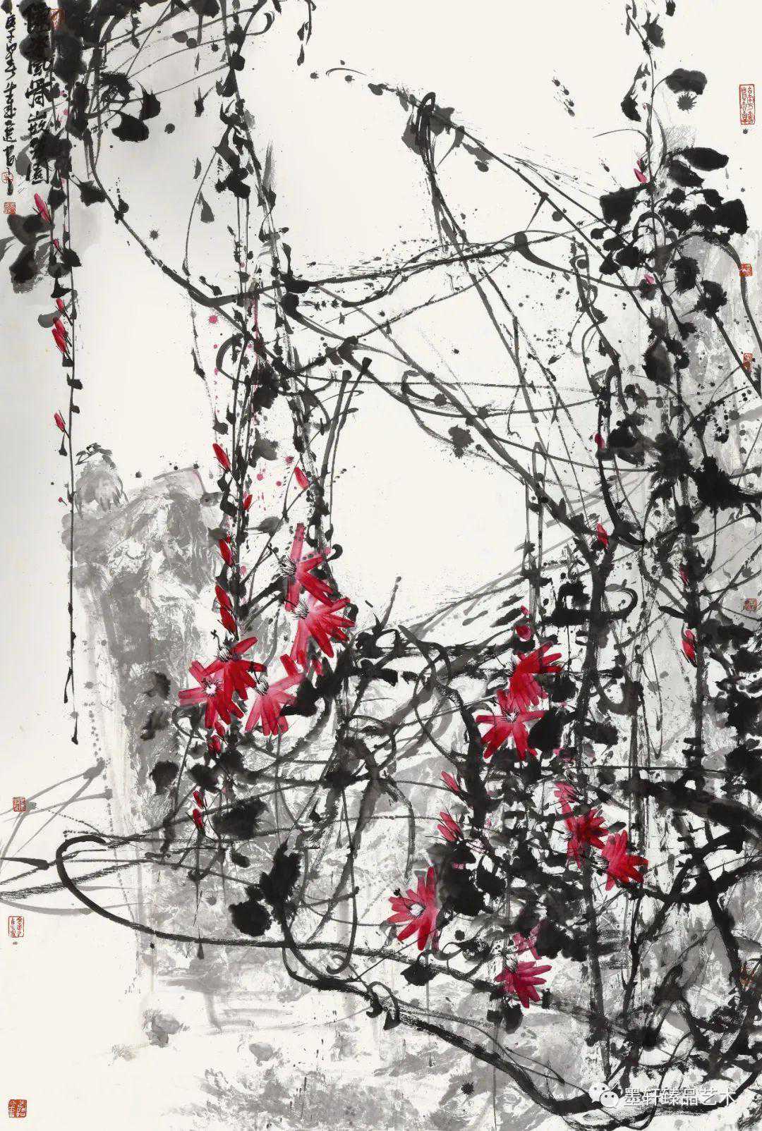 经常点赞成选的微信朋友圈,知其近几年的进步。经晓林兄引荐,他先后师从中央美院于光华教授,后又上张立辰先生的高研班,惟求书画大道矢志不移。年届八旬的张立辰先生师从潘天寿先生,是中国写意花鸟画之传承正脉,先生提出的笔墨结构论、黑白韬略论等深深地影响了当代中国花鸟画坛。他从实践中总结理论,再以理论指导实践,阐明了中国画的哲学精神和笔墨规律,形成了一整套卓有成效的中国画教学体系和独具一格的写意花鸟画风格样式,影响深远。于光华先生师从张立辰先生又推出了放纵理性论,在张先生的基础上又有所延伸和发展,在写意花鸟画的形式与结构上有独到的研究。其作品天骨开张、势足力大,粗中有细,气旺意长。他带领央美十几届学生赴西双版纳等地开展现场大写意写生,在充满生机的花木世界开创了写生直入创作的先河,对于当代写意花鸟画的繁荣发展功不可没。成选师法二者既走上了当代写意花鸟画的正宗,又让自己的笔墨技巧得到了质的飞跃和提升。