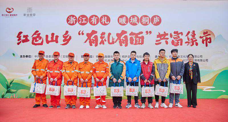 活动现场还为环卫工人、快递小哥代表发放了“冬日温暖礼包”,并为“桐庐县新时代文明实践点”“亚运供餐单位”授了牌。
