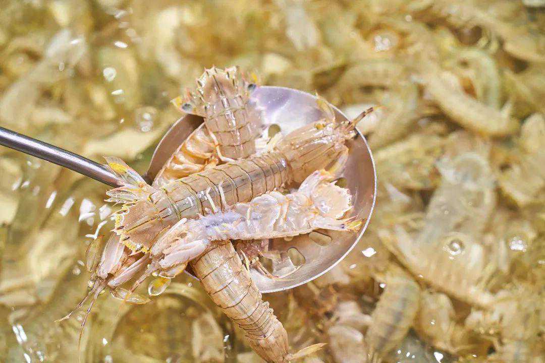 现捞的皮皮虾,活力满分!肥美鲜甜的肉质,透露出浓浓的鲜香,蘸着海鲜汁吃口感更不错。虾肉里的虾膏饱满,好吃到吮手指!