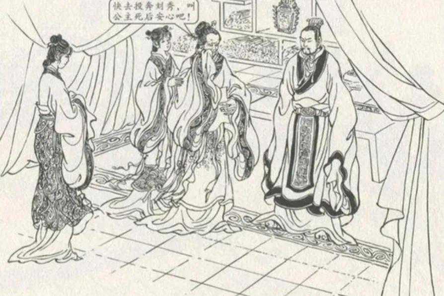 公主没敢进屋,怕他母子难过,自己转身回去了。到了自己房中坐下,闷闷不乐,心中暗想:自己的命运不佳,偏偏生在王莽的家中。王莽弑君篡位,与我何干?看起来作父母的要是做了不好的事情,连累得女儿也难见天下人。吴汉跟自己是恩爱夫妻,为了自己叫驸马为难,使吴汉生则难对其母,死则难对其父;吴汉要在此时归降了刘秀尚不为晚,将来刘秀要把天下得回去,吴汉还可能当个开国的大将,论功受赏,位至公侯,又能光宗耀祖,显达门庭。倘若失此机会,等到自己的爹爹一败涂地,吴汉就得担个附莽之罪。可是此时吴汉要是去降大汉,刘秀一定不要他,说他是王莽的姑爷,是诈降。