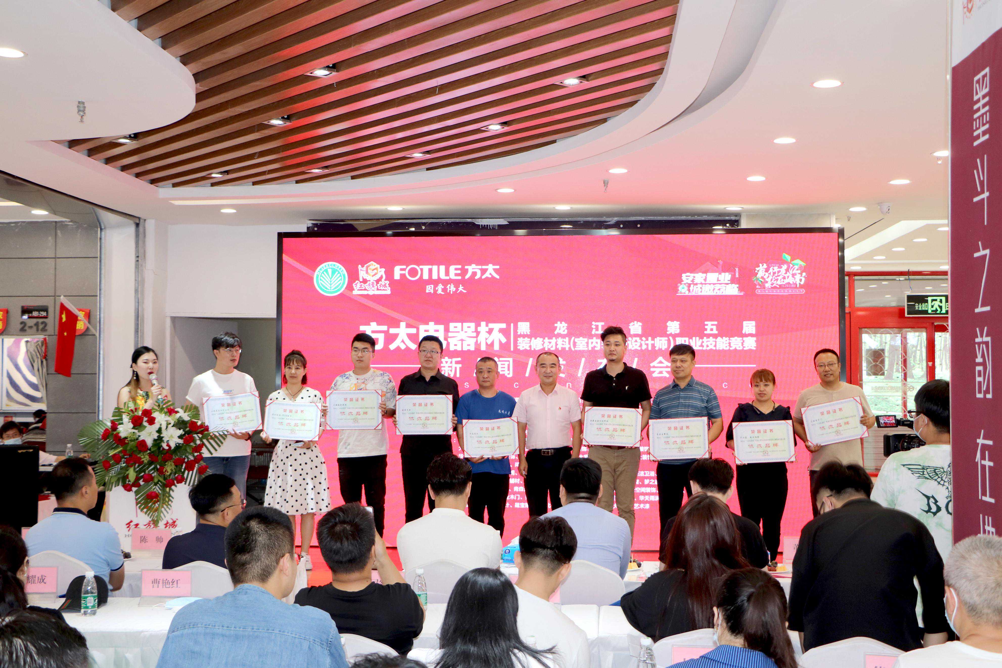 黑龙江省装修材料行业协会会长赵勇、方太集团家装事业部副总经理李泽明、方太集团哈尔滨分公司总经理曾琦、方太集团东北大区家装业务部经理曹荣飞、红旗城总经理董刚、黑龙江北电科技有限公司总经理胡朝晖、伟星商贸销售经理李宏伟、津达线缆销售经理刘利民、顺辉瓷砖总经理张鹏、九牧卫浴黑龙江运营中心渠道总监衡昱、桐梯赢木业销售经理王微、金色莱茵门业销售经理毛久灵、卧虎集团常务总经理刘鑫铭、恒洁卫浴家装合伙人李宝丽、萨米特瓷砖市场部经理李庆宇、左林特木门总经理迟瑞华、华润漆、威士伯漆重点客户部经理方丽、爱品生新风总经理代庆阳、洪晟铭鑫环保科技总经理王洪恩、水克防水总经理朱昱、建青木业一站式辅材销售经理史缘鸿、壹柒多彩贝壳粉耿飚、三雄极光照明黑龙江办事处主任王辉、青岛海信电器营销股份有限公司哈尔滨分公司海信电视营销经理樊浩、深圳创维-RGB电子有限公司黑龙江分公司新零售经理刘净、小米黑龙江分公司培训经理高楠,“方太电器杯”黑龙江省第五届装修材料行业(室内装饰设计师)职业技能竞赛的专家评委和设计师代表等80余人齐聚一堂。