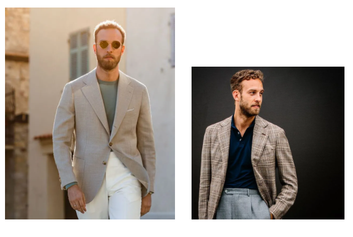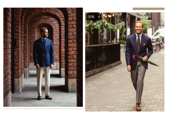 并不是西装外套一套上去就是商务派风格了,如果是非正式的casual穿法,Andereas会选择休闲Polo或者圆领上衣做内搭,既保留了西装的轻绅士风格,又不失随性休闲气派。