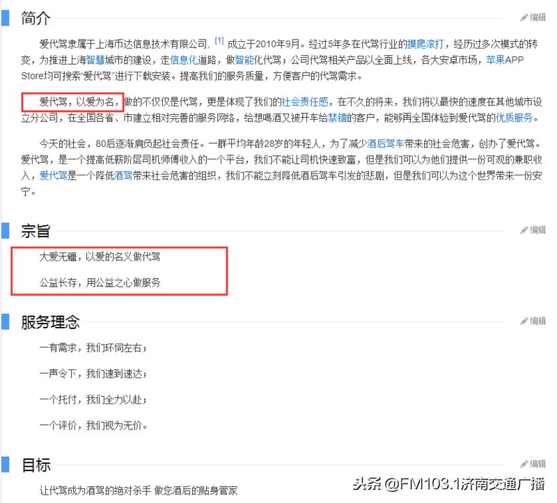 小编在跟进问题的时候,发现百度百科这样介绍爱代驾——爱代驾,以爱为名,做的不仅仅是代驾,更是体现了我们的社会责任感——如今看来,这句话颇有一丝讽刺的意味: