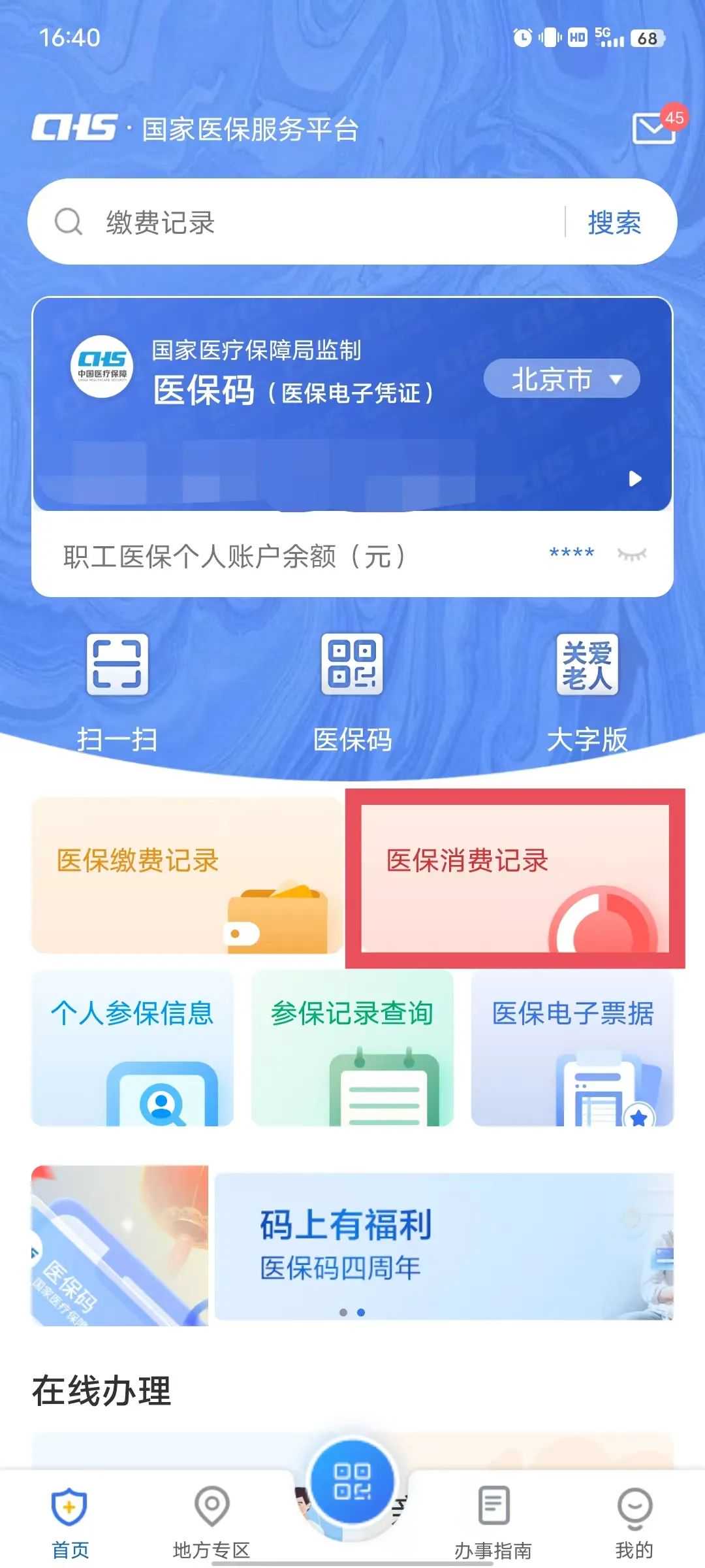 不用出门跑窗口,在线就能查询医保参保信息、医保缴费记录、医保消费记录,太方便了!