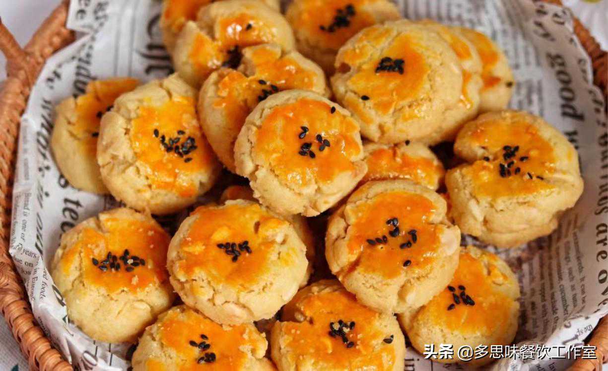 鸡蛋1个、糖80g、玉米油80g、低筋粉200g、熟花生碎70g、小苏打1.5g、泡打粉2g、黑芝麻少许