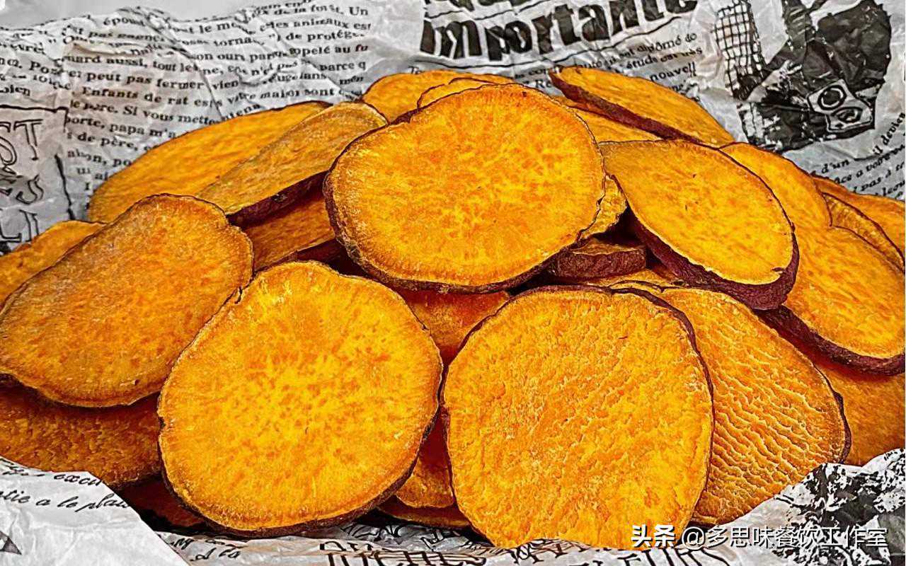 1红薯洗净后切均匀厚度的片,2mm左右最好。太薄会烤黑,太厚会烤不脆。