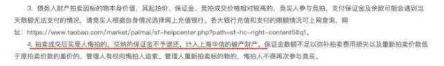 “本次拍卖为第四次拍卖,因第三次拍卖(2020年11月9日10时开拍)的竞买人未按期足额交纳拍卖余款,视为悔拍,因此管理人对上述标的重新拍卖,悔拍人不得参与本次竞拍”。