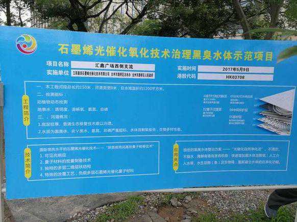 由中国科技开发院江苏分院与中国环境科学研究院与江阴嘉润公司联合开发的“石墨烯光催化自然净化法”技术是目前众多治水技术中,比较行之有效、切合实际的方法,去年12月通过了中国环境科学学会组织的环保科技成果鉴定。中国科技开发院江苏分院副院长冯冠华介绍说,利用光催化网先锋技术的产品,可降解水体污染物质,增加水体溶解氧,在保留河道底泥基础上逐步恢复水体直至重建水体生态系统,恢复水体的自净化能力,过程中还可以配合适当的水生态修复技术即可使水体长效健康。