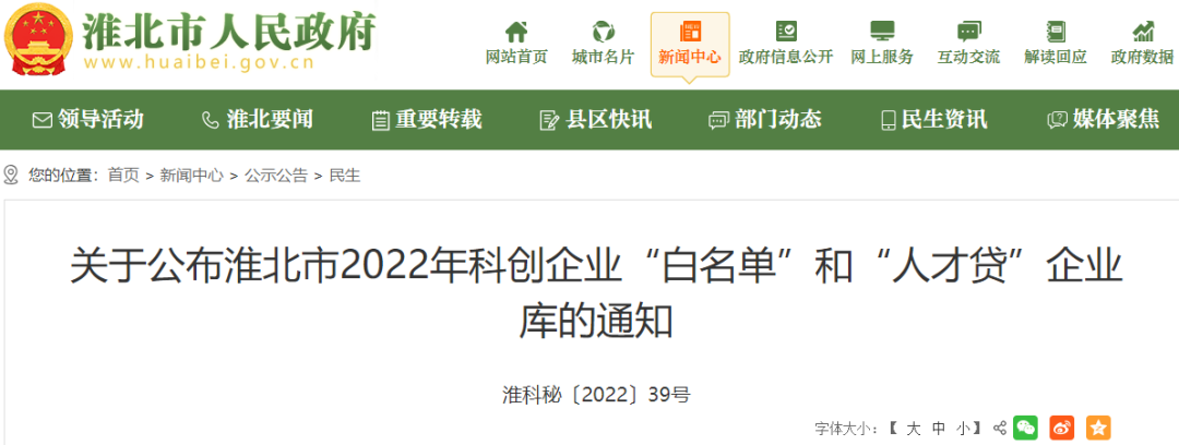 为贯彻落实淮北市创建一流营商环境工作领导小组办公室《关于印发创优营商环境提升行动方案(2022版)的通知》(淮营商环境办〔2022〕1号)要求,加快实施新时代人才强市战略工作部署,推动金融机构加大对我市高层次人才创业类企业和科技创新型企业的信贷支持力度,缓解科技创新型企业融资难题,现将2022年科创企业“白名单”和“人才贷”企业库名单(325家高新技术企业、科技型中小企业、人才团队企业)予以公布。