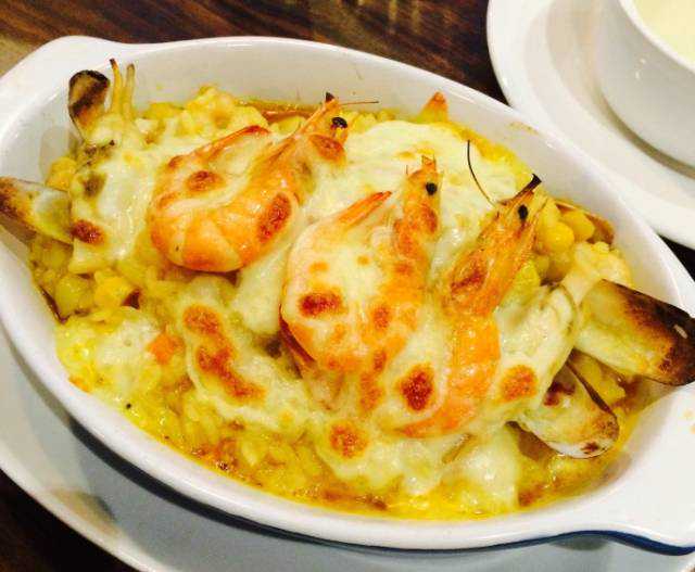 西班牙海鲜焗饭是真的不错,用料很丰富,虾子不仅大还挺多的,不想吃牛肉的来份饭也是不错的选择。