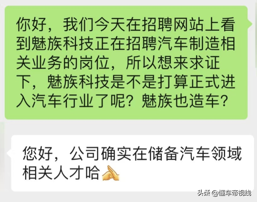 此外,疑似魅族人员也对正在招聘汽车领域的人才进行了回应,表示“确实在储备汽车领域相关人才”。