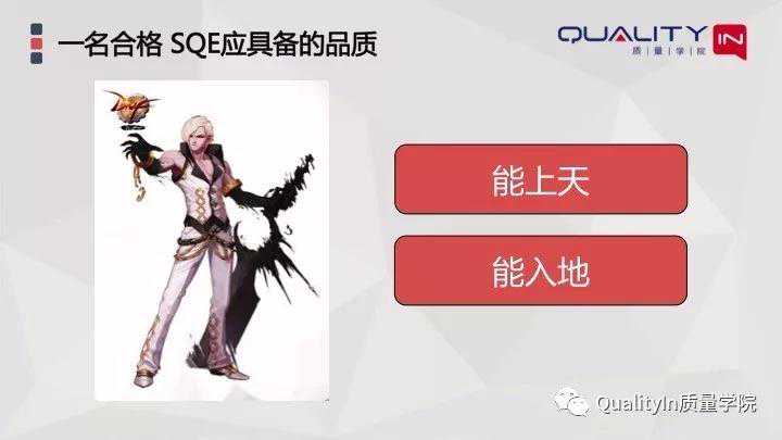 为了能够满足能上天能入地这样的一个全能战士的基本的要求,我们就要去考虑,作为一个合格的SQE应该具备什么样的能力?我们要充实我们的这种知识和能力,来完善我们的知识结构。具体我们应该具备什么样的能力或者是具备什么样的知识结构?