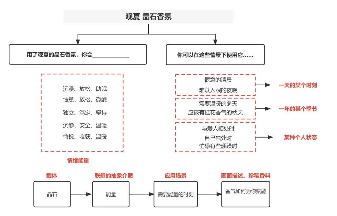我仔细拆解了观夏的晶石情绪香氛文案,逻辑如下: