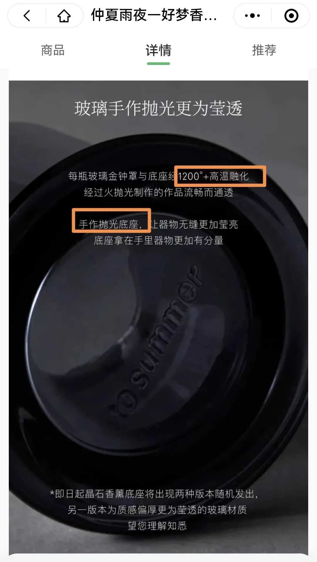 不仅需要手作,通过公众号文章和小程序详情页我们可以发现,观夏还在珍稀原料的塑造上下足了功夫。