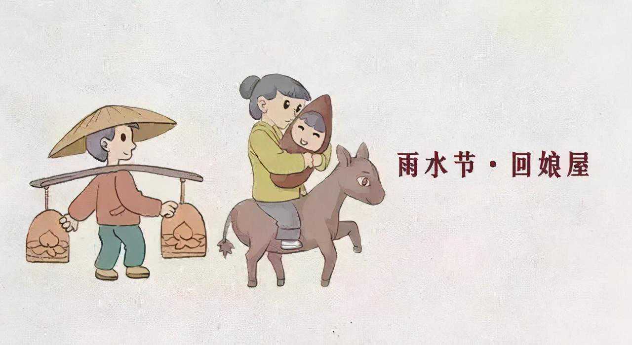 回娘屋是流行于川西一带的一项风俗。民间到了雨水节气,出嫁的女儿会纷纷带上罐罐肉、椅子等礼物回娘家拜望父母,感谢父母的养育之恩。